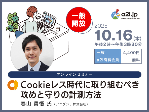 2025年10月16日(木)、アユダンテ株式会社のデジタルマーケティングエンジニア 春山優吾氏を講師に迎えたオンラインセミナー「Cookieレス時代に取り組むべき攻めと守りの計測方法」を開催しました。