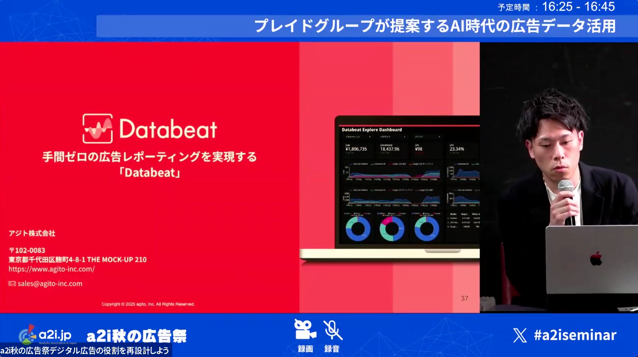 11月18日に開催された「a2i秋の広告祭」で、プレイドグループからは、KARTE Signals(株式会社プレイド)、Databeat(アジト株式会社)の2つのサービスが紹介されました。