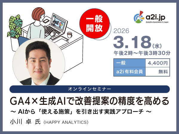 オンラインセミナー「GA4×生成AIで改善提案の精度を高める ― AIから「使える施策」を引き出す実践アプローチ ―」|2026/3/18(水)
